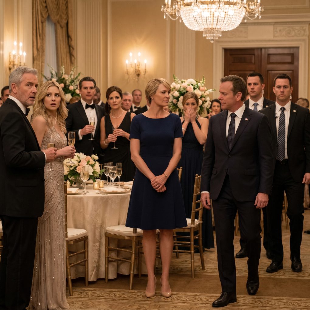 Two federal security agents in dark suits entered first, scanning the room with practiced stillness. Conversation faltered. The quartet broke rhythm. A few guests turned, expecting perhaps some dignitary had arrived for the Hales. Then a third figure stepped in behind them—a cabinet-level official everyone in that room recognized instantly.